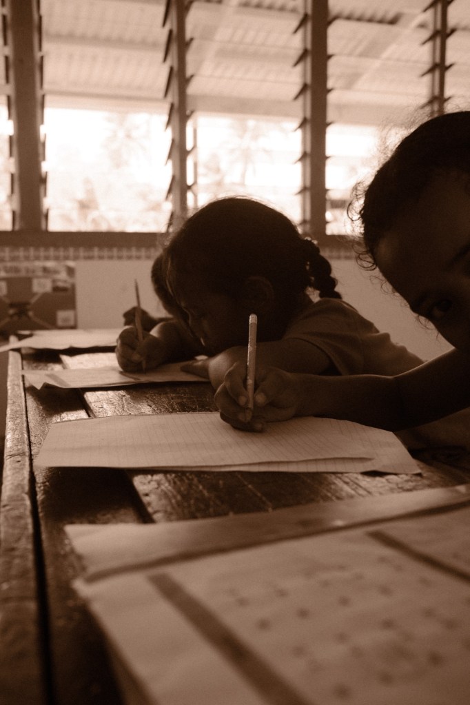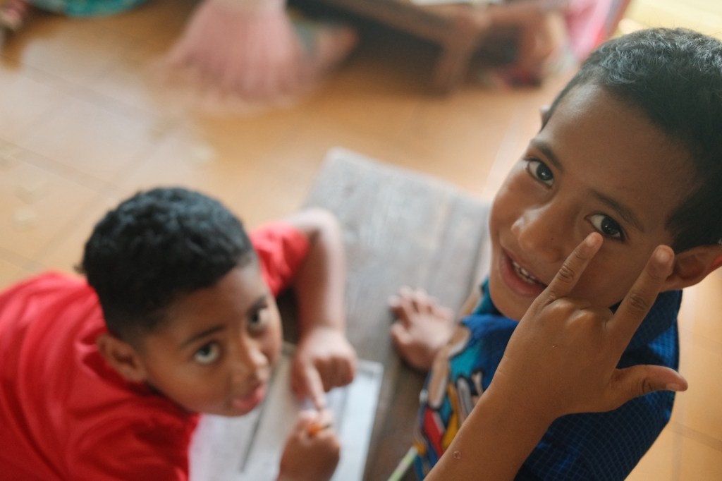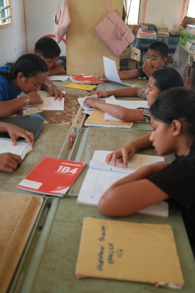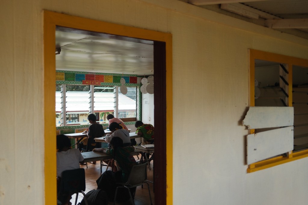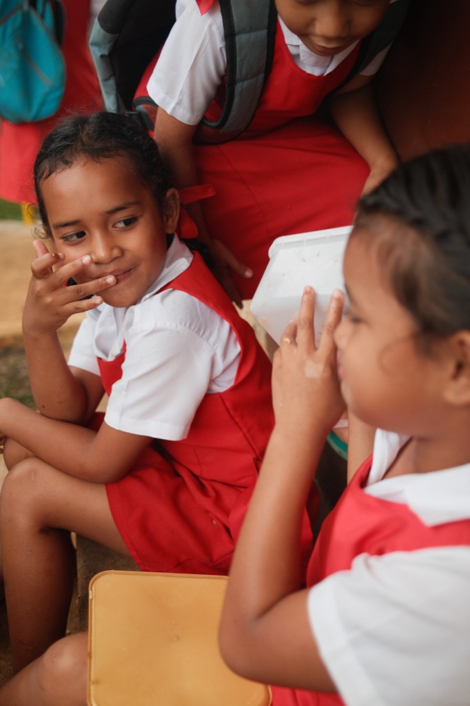 Longomapu GMS has around 100ish students and grades range from kindy (kindergarten) to class two (7th grade). School starts at 8:30 am with the flag raising and prayer, which admittedly I don’t have a photo of because I usually arrive at school around 9:30. There’s a brief snack at 10:30 am, a lunch at noon with a recess once they’re finished eating, and a dismissal at 3:20 pm.