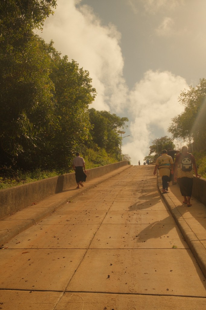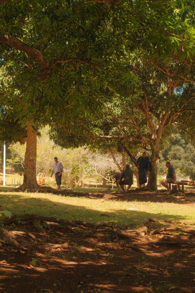 The next stop was Neapapu. This place didn’t even seem real. Lush grass fields, horses roaming the plains, and trees with trunks larger than a truck. I had a scary run-in with some dogs that were not perturbed by my fake rock throwing and I had to jump over a fence to avoid a mauling. I decided that was a sign and I kept walking in that direction. It was a good decision. I found a few oldies who were happy to talk to me. I even ran into a toko that I beat at pool a few weeks ago in town. I won, but he wasn’t as happy to see me. We had a really good talanoa (conversation) under a mango tree, then we were on our way.
